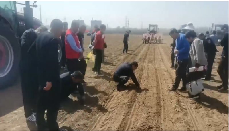 ? ? ? ? 2024年4月12日,我廠生產(chǎn)的2BMYFS-6型氣吸式高性能玉米單粒精量播種機參加了濟南市農(nóng)業(yè)機械技術推廣站組織的在章丘龍山鎮(zhèn)召開的“濟南市高